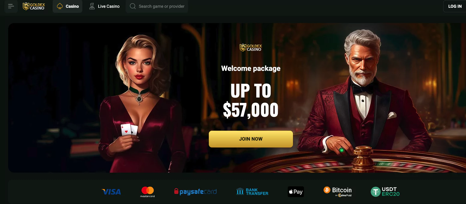 Goldex also supports multiple payment methods, including traditional cards (Visa, MasterCard), prepaid options like Neosurf, and cryptocurrencies such as Bitcoin, Ethereum, and Tether (USDT). Withdrawals are processed quickly, with most transactions completed in under an hour.