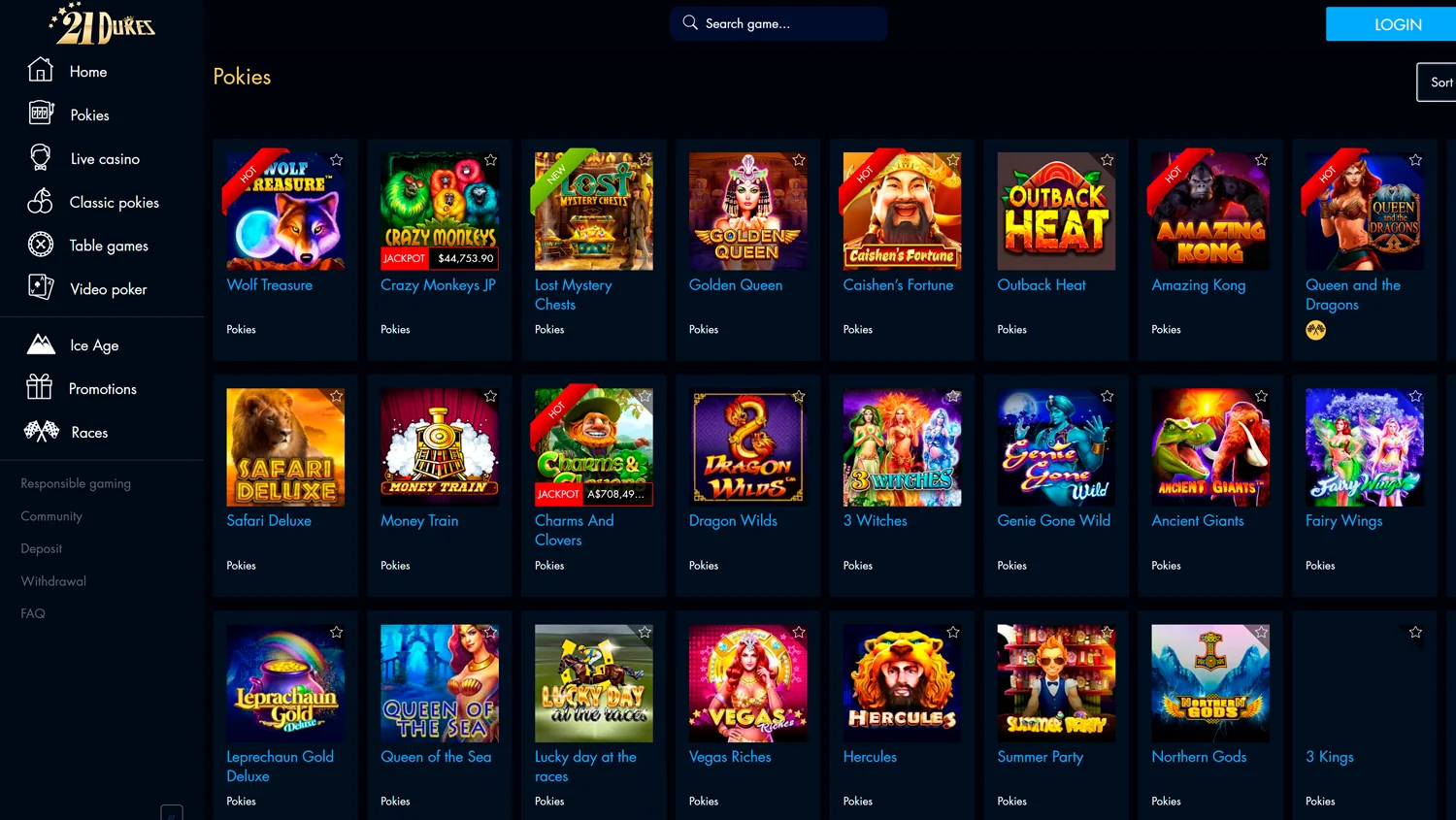 21Dukes offers a variety of entertainment: from pokies to table & card games, the site has it all. Explore the catalog of the casino games to discover popular options from leading gambling software developers and some aspiring teams.
