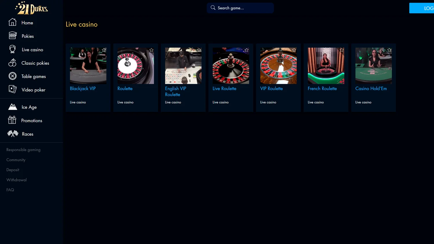 Take a look at the table below to discover the selection of available live games in 21Dukes Casino.