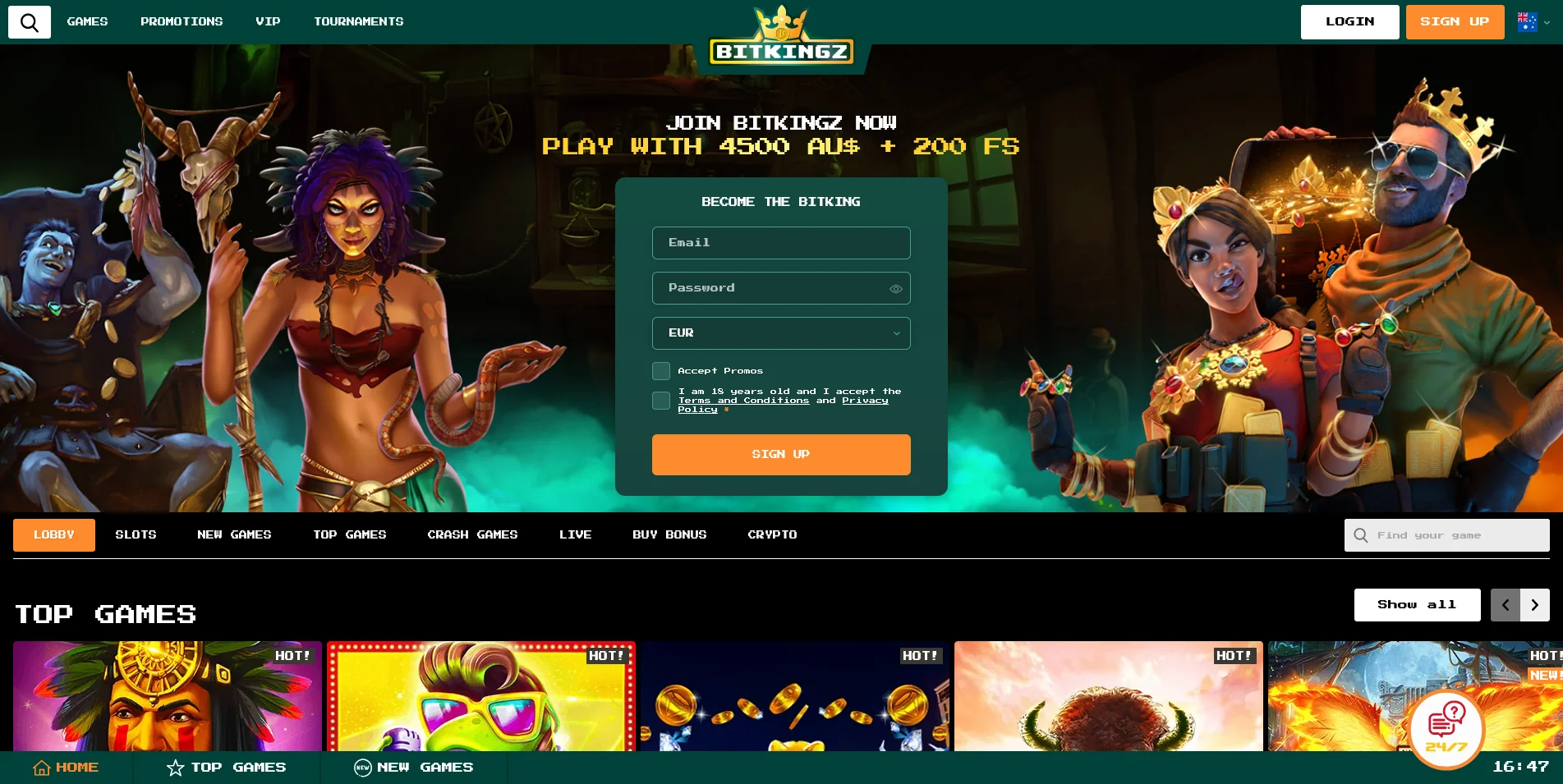 Please note that you must be at the age of at least 18 years in order to be able to open a new account at Bitkingz Casino Australia. In addition, you must not live in any of the restricted territories. Bitkingz Casino is legal in Australia.