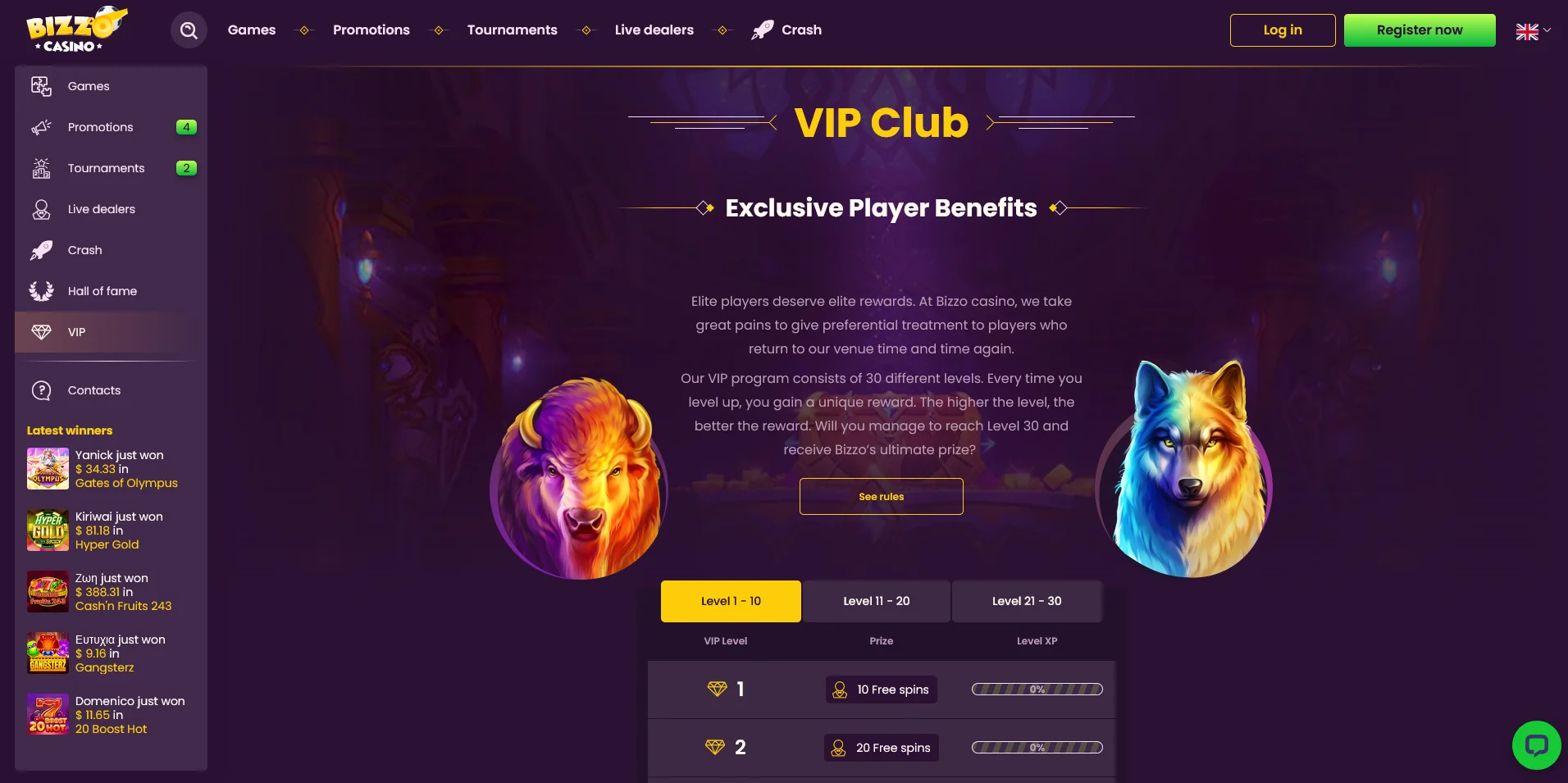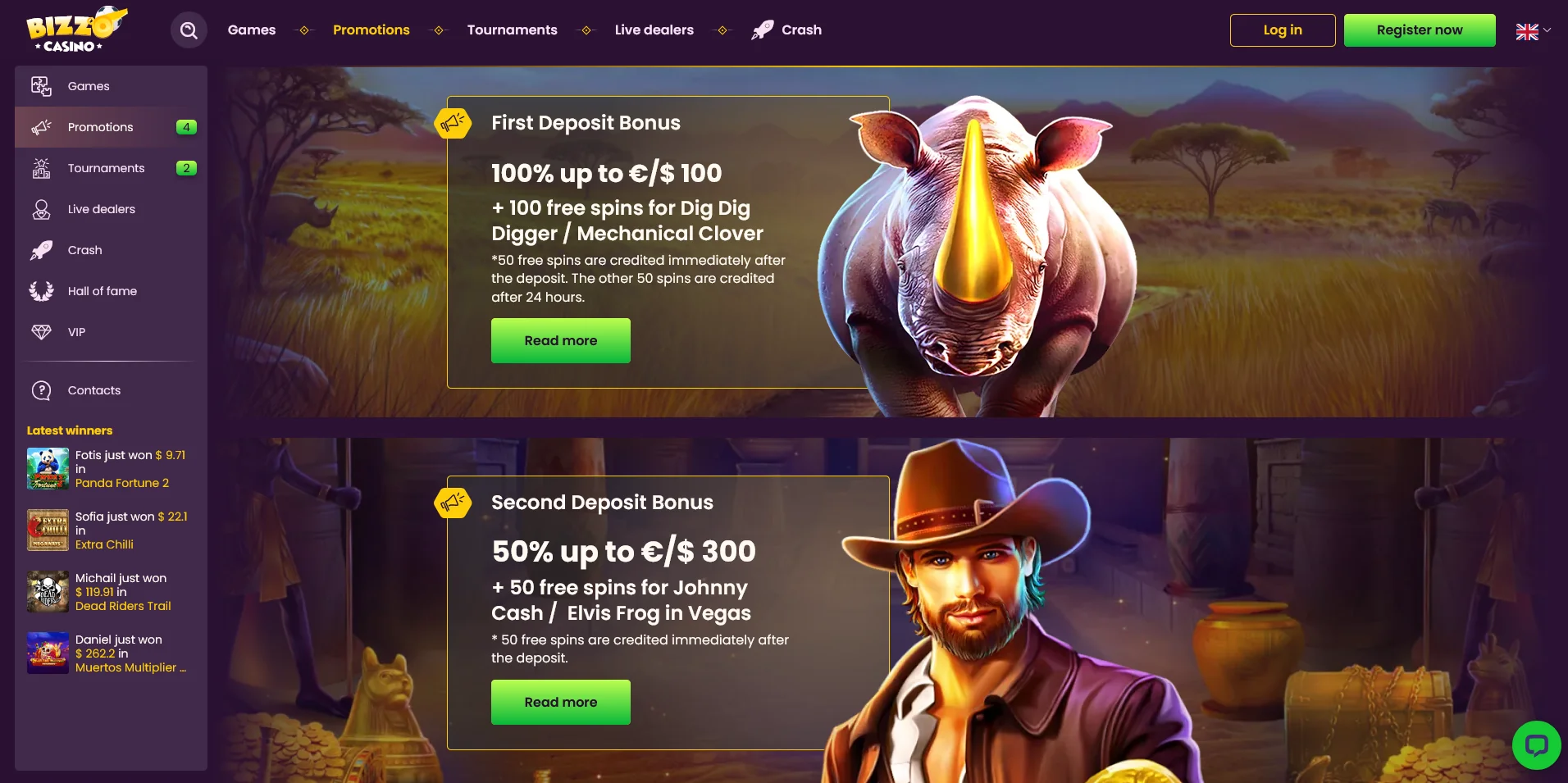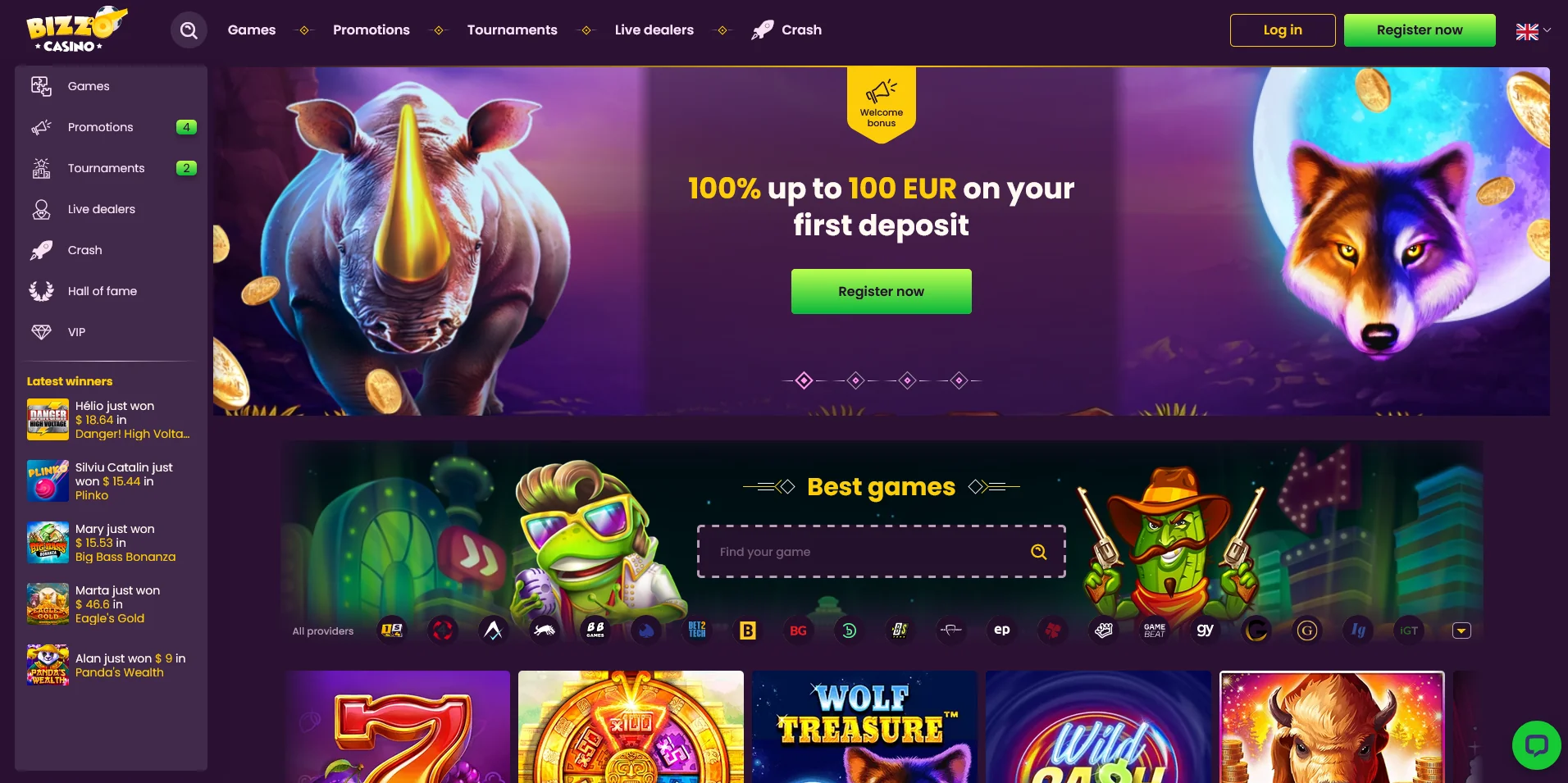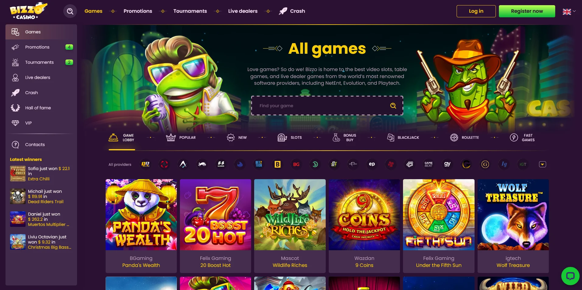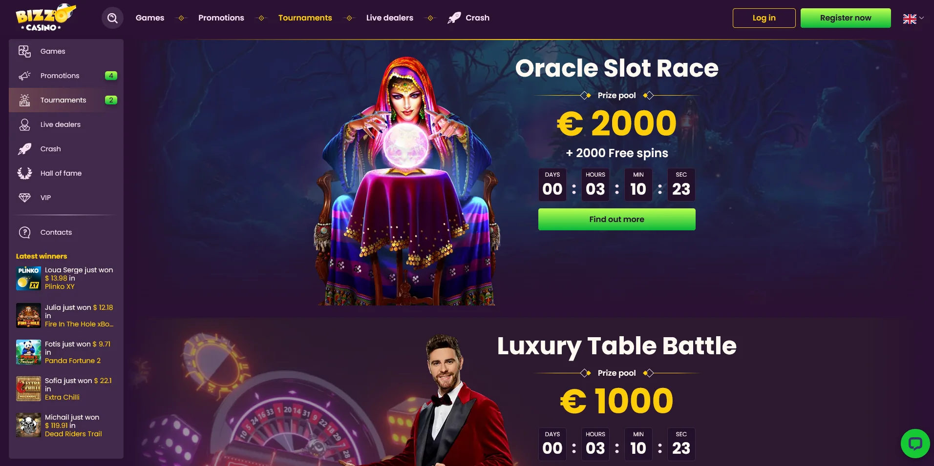 You will also be able to look through the list of the latest winners of the Bizzo Casino website with their results.