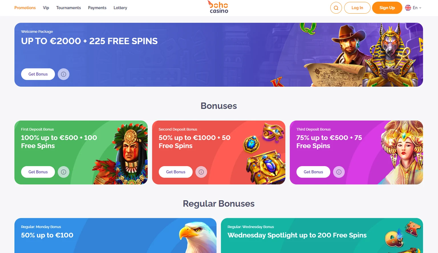 - Doesn’t offer a Boho Casino no deposit bonus;