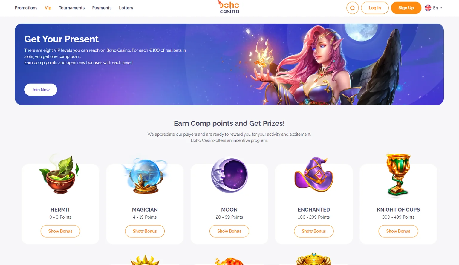 - Numerous constant Boho Casino bonus codes and temporary tournaments;