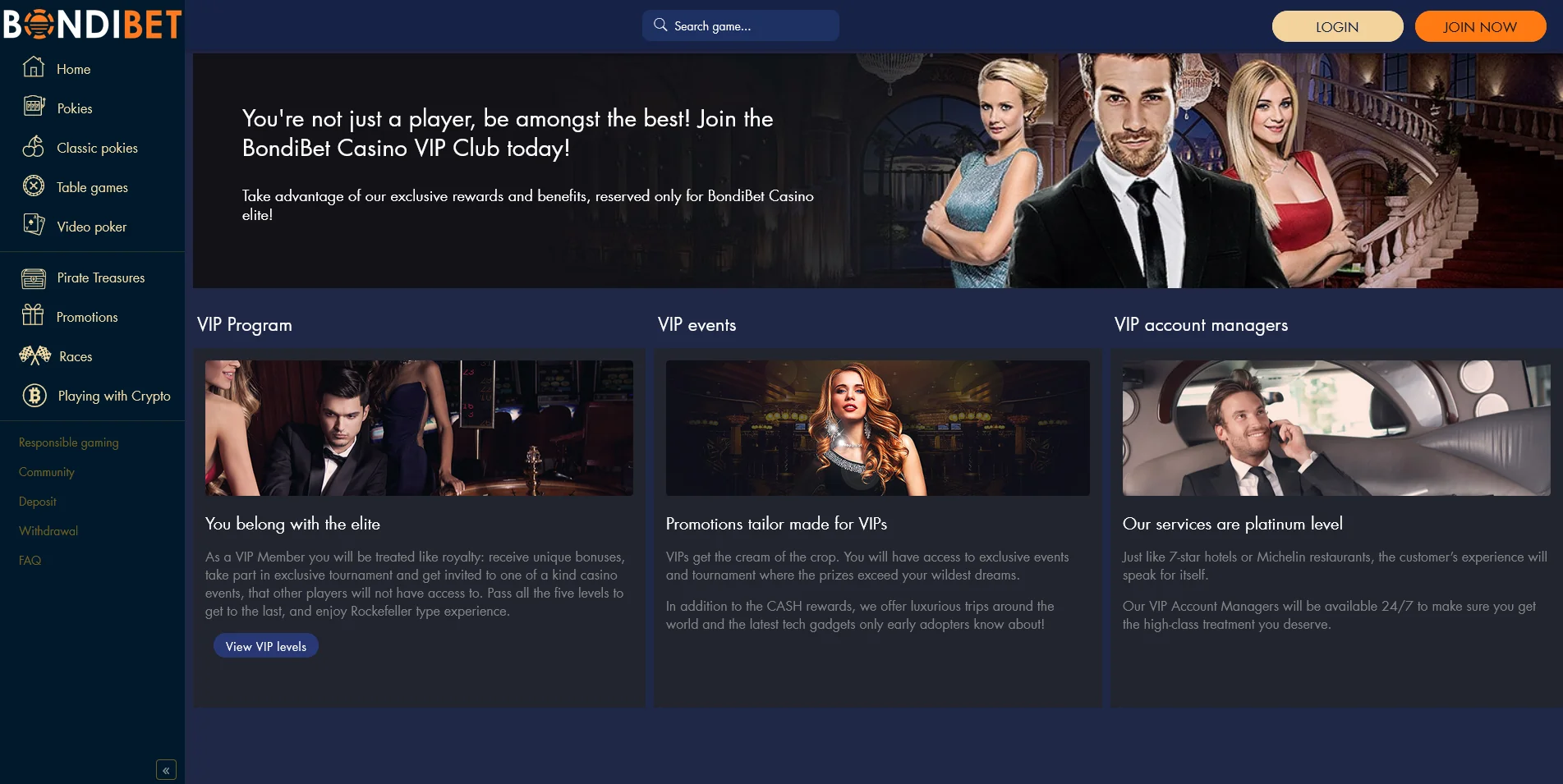 The BondiBet VIP program comes with many perks. It’s a 6-level loyalty system where the most loyal customers will get the best rewards. You start off on the Basic level, and as you collect comp points, you will keep increasing your rank. The next levels are Silver, Gold, Platinum, Titanium, and Master, respectively. You will reach the Master level after getting your 150,000th comp point. At this level, you get invitations to exclusive events, and exclusive tournaments, you get dedicated promotions, and a personal VIP host as well.