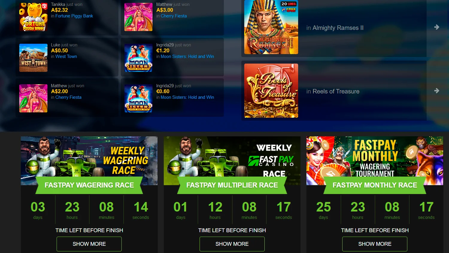 Along with Fast Pay bonuses come weekly and monthly tournaments:
