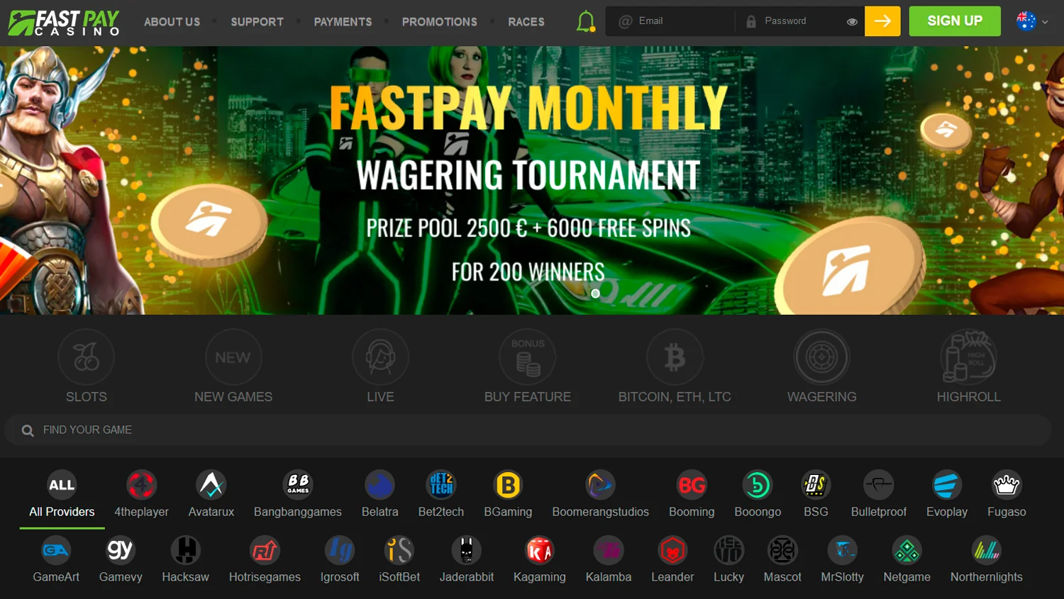 FastPay Casino is an example of a real money casino site that combines top-notch games from well-established providers, as well as high-quality services and various payment methods. On top of it, Aussie gamblers can benefit from various Fast Pay promotions and a 10-level VIP program that is designed to provide casino customers with even more bonus options. With its broad range of games and its selection among various categories, FastPay Casino AU remains among the leaders in the market Down Under.