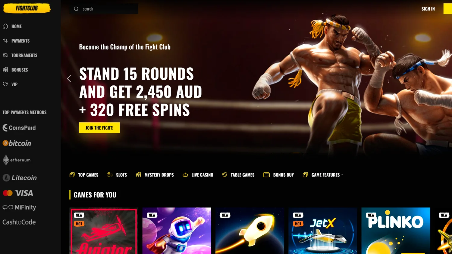 You will read about the software providers the Australian real money casino cooperates with, the variety of real money games, the availability of payment options for players from Australia, as well as how to obtain the Fight Club no deposit bonus.