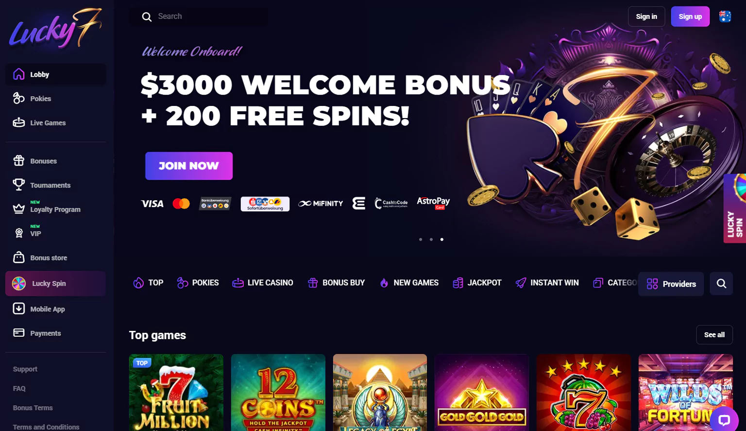 At Lucky7even Casino, Australian players have a variety of deposit and withdrawal options, including credit cards, prepaid vouchers, and cryptocurrencies. We found that there are no fees associated with deposits or withdrawals.