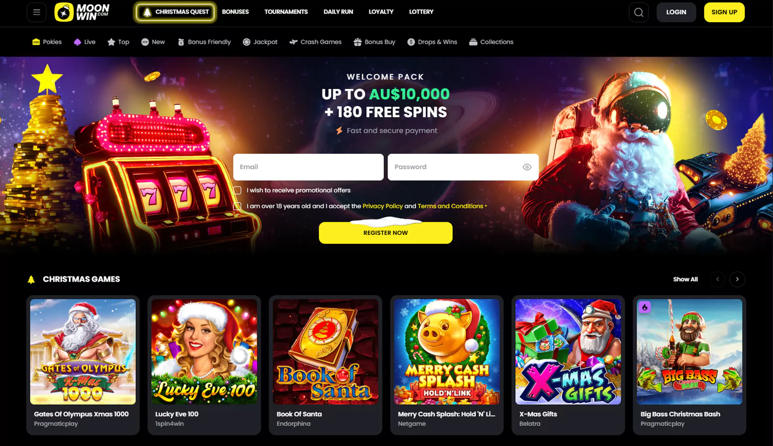 Moon win Casino provides an amazing array of bonus offers for Australian players, regardless of whether they are new or already registered. The bonus offer includes the welcome package, reload promos, and VIP prizes, but also various tournaments, missions, lotteries, and daily runs to be completed.