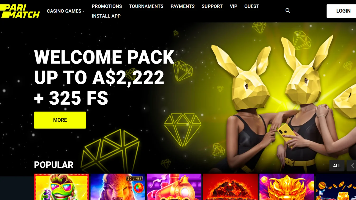 Dark colours prevail on the online site of Parimatch Casino AU, which is easy on the eye and isn’t cluttered with unnecessary icons and buttons.