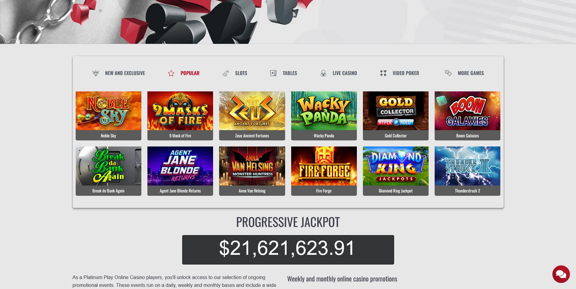 - Promotions. Click here and you’ll get comprehensive information about Platinum Play casino bonuses and the conditions for obtaining them. It is about the welcome perk, weekly and monthly online casino promos, loyalty rewards, and annual promotional events – the Fortune Lounge Cruise;