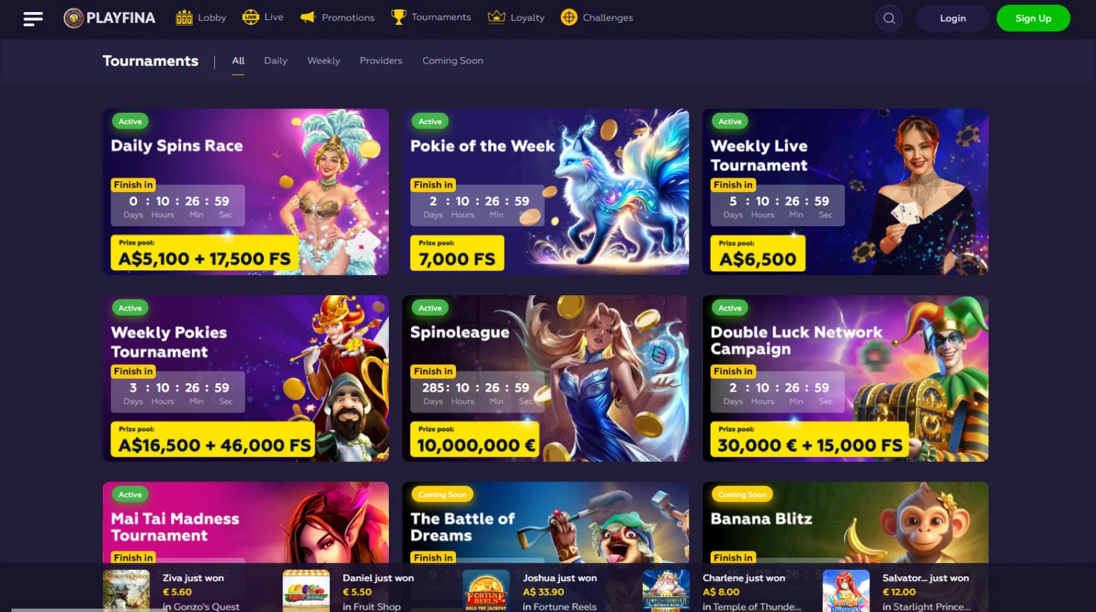After checking all the bonuses and promotions for our Playfina casino review we can say that this aspect is realized here at the highest level. In addition to the welcome bonus, there are daily reload bonuses, cashback, tournaments, and challenges.