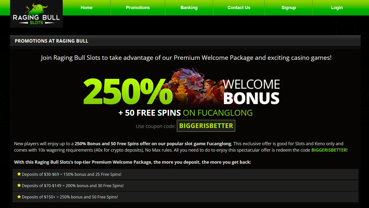 Check out other Raging Bull online casino bonuses: