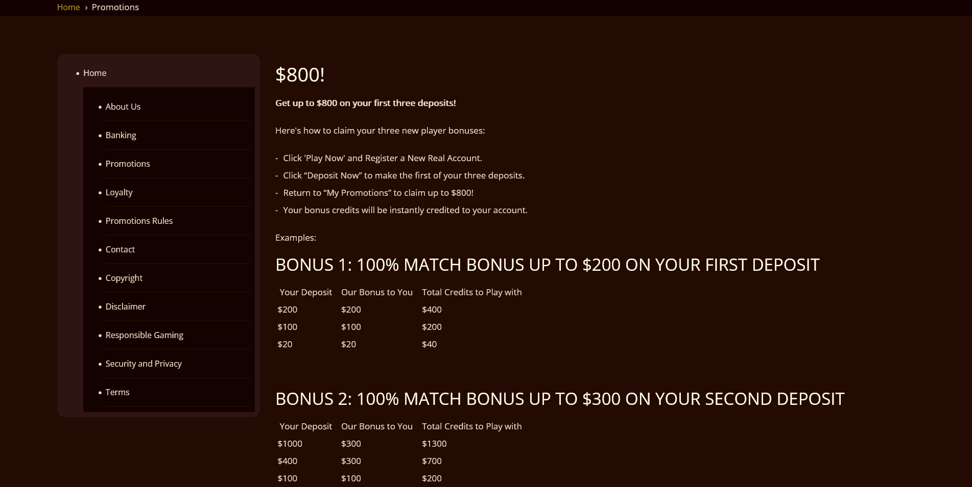 In total, you may get up to AUD 800 for your 1st, 2nd, and 3rd cash-ins. Each has a 50x wagering requirement. To receive this reward, you must open an account first. After adding funds, navigate to the My Promotions page and claim the gift. The funds will momentarily appear in your casino wallet.