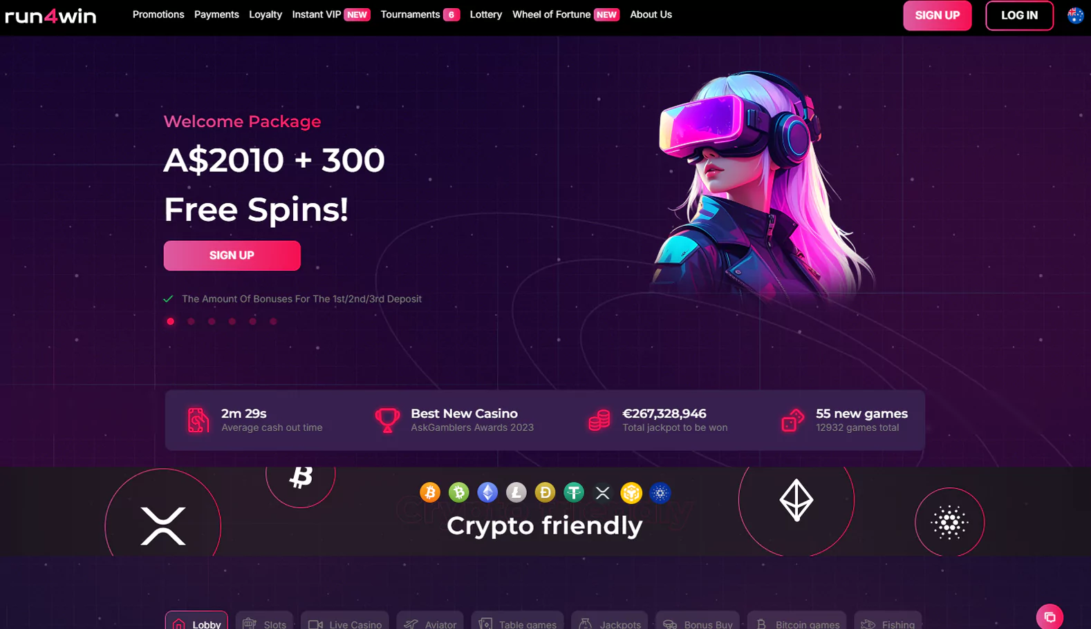 Run4win is a new online casino that has already made a name for itself among users in Australia. There are thousands of games of different types and many generous bonuses. The casino also offers a loyalty program, tournaments, Wheel of Fortune and provides gamblers with complete convenience in payments. We registered, made a deposit, played, withdrew, wrote down everything we liked as well as the flaws.