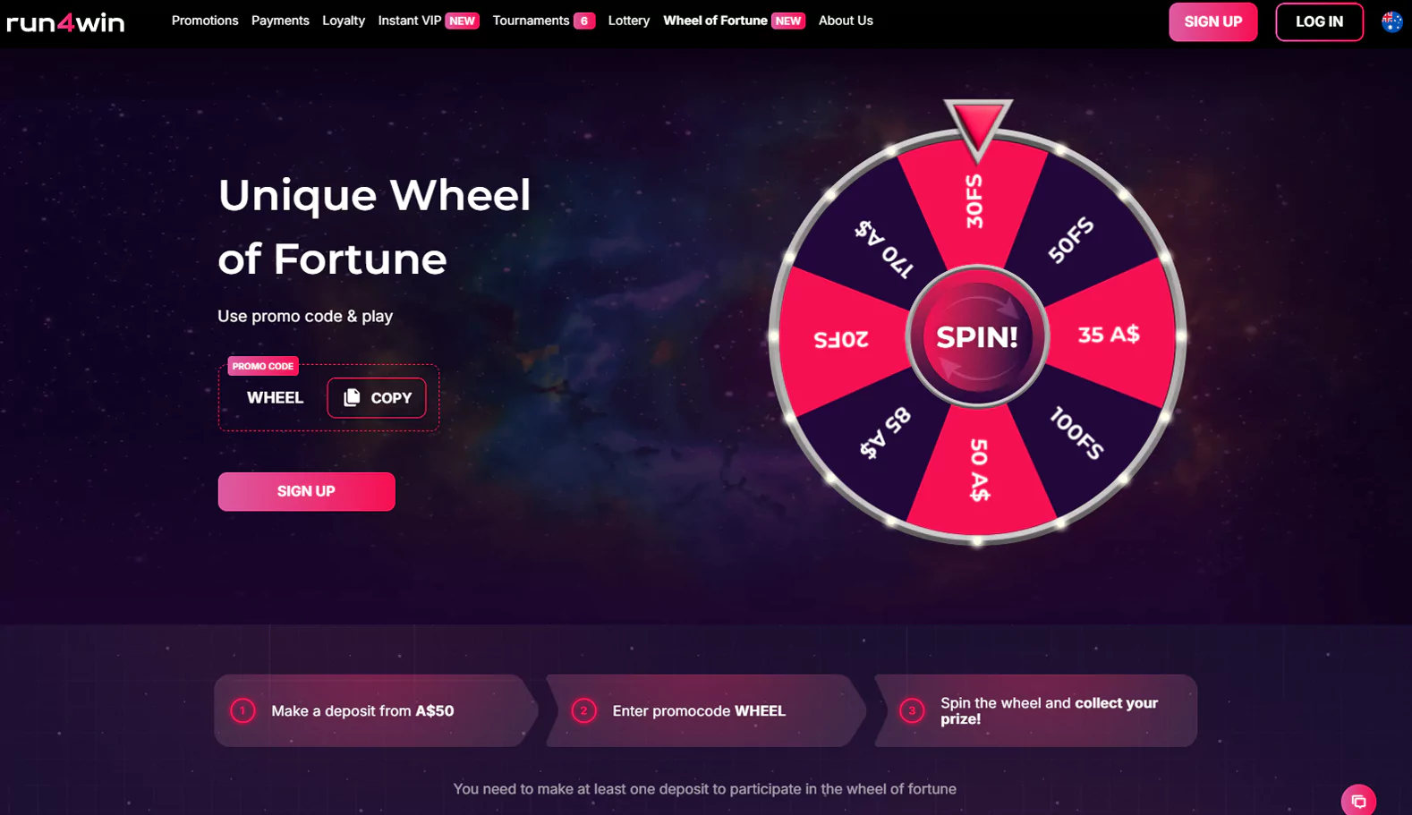In order to make a deposit, start gambling at Run4win, receive bonuses and withdraw money, every new user from Australia must first create a personal account. We went through the registration process in 1-2 minutes, and here are the instructions: