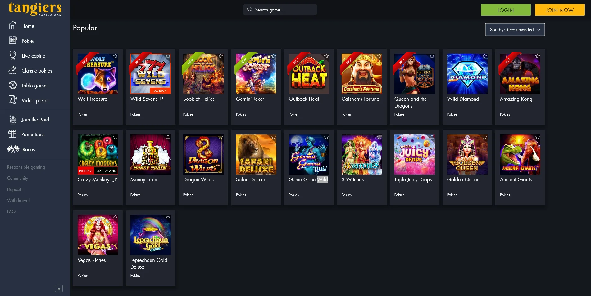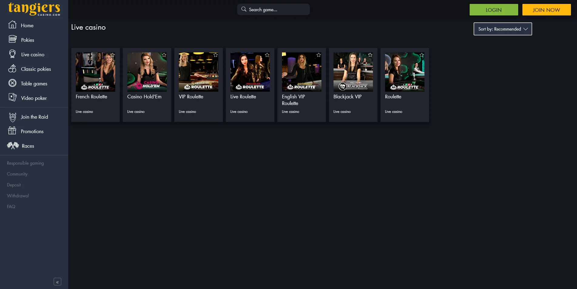 The platform displays over 200 online games to satiate the taste of different-profiled players. The available game categories found on Tangiers site are: Pokies, Classic Pokies, Live-dealer, Table Games, and Video Poker.