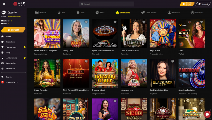 There is a good variety of live casino games we found on Wild Tokyo Casino, especially live dealer games. It’s a casino that covers all your needs, whether you want to play roulette, black jack, baccarat, or craps, among other games that are frequently played but are live. There are even some of the less popular card games, Teen Patti, for instance, and Andar Bahar.